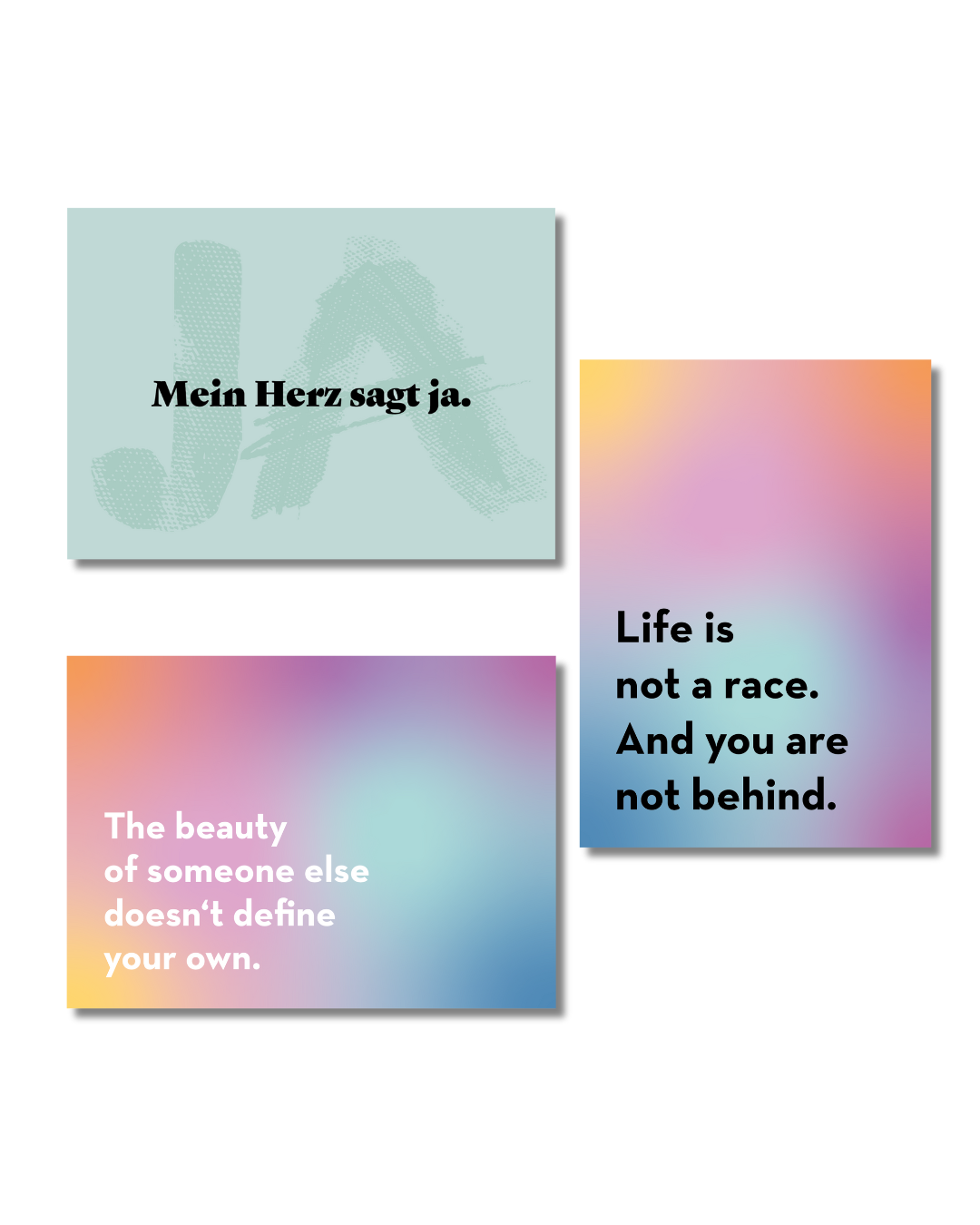 Entdecke unsere umweltfreundliches Postkarten Set "Statement Mix" mit allen einzigartigen Designs, gedruckt auf nachhaltigem Apfelpapier. Unser Ziel ist es, dir eine umweltbewusste Möglichkeit zu bieten, deine Botschaften zu versenden oder in deinem Zuhause zu präsentieren. Diese umweltfreundlichen Karten werden aus Resten der Apfelindustrie hergestellt und tragen aktiv zu einem nachhaltigen Lebensstil bei. Mit ausreichend Platz für deine persönliche Nachricht sind diese Karten die perfekte Wahl, um deine Gedanken und Wünsche gegenüber anderen auszudrücken.